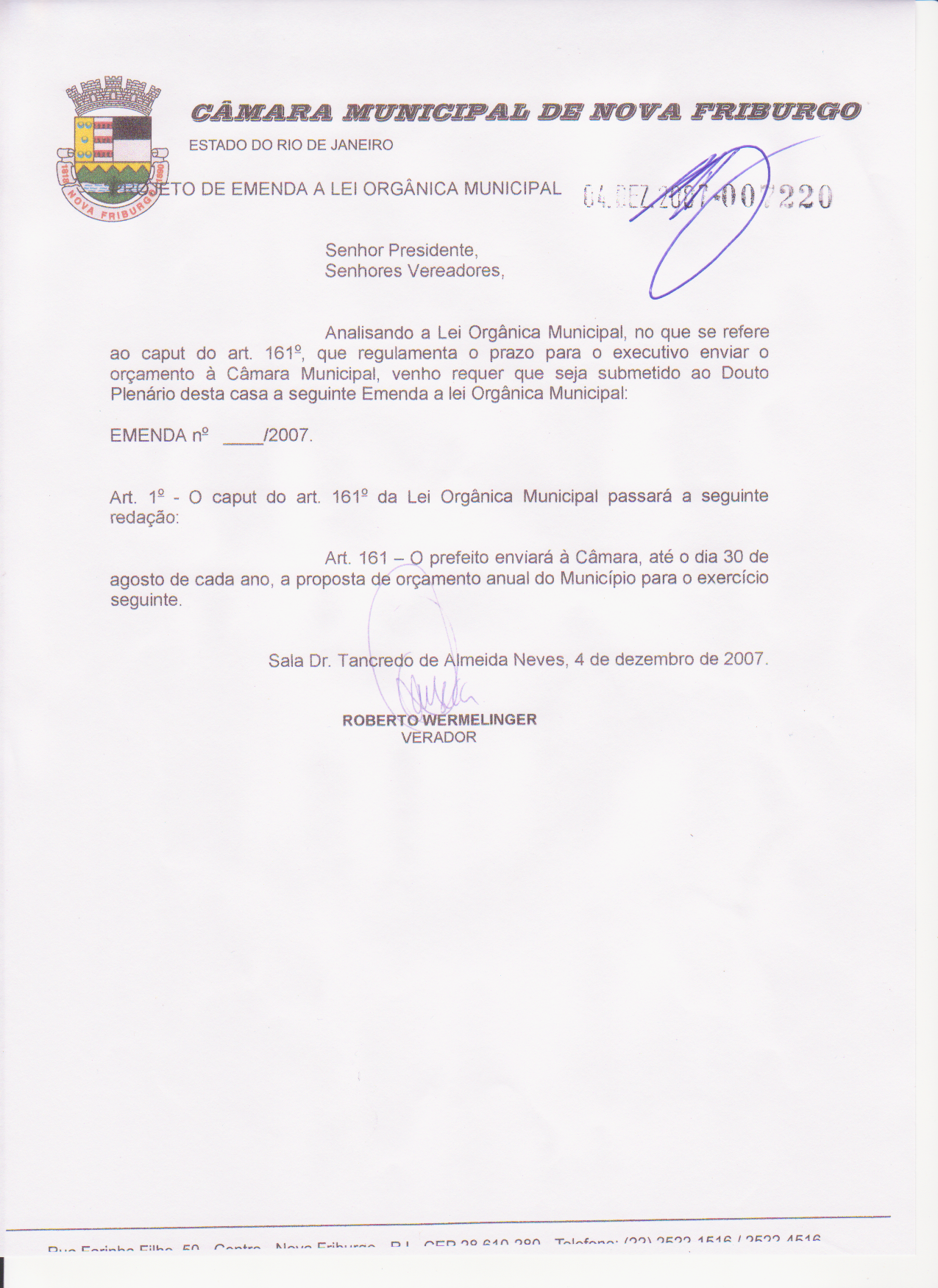 Ementa: ALTERA A REDAÇÃO DO CAPUT DO ARTIGO 161 DA LEI ORGÂNICA MUNICIPAL.